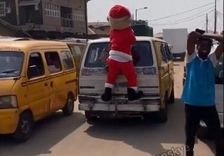 Santa Claus Spotted Hanging On A Moving Bus In Lagos